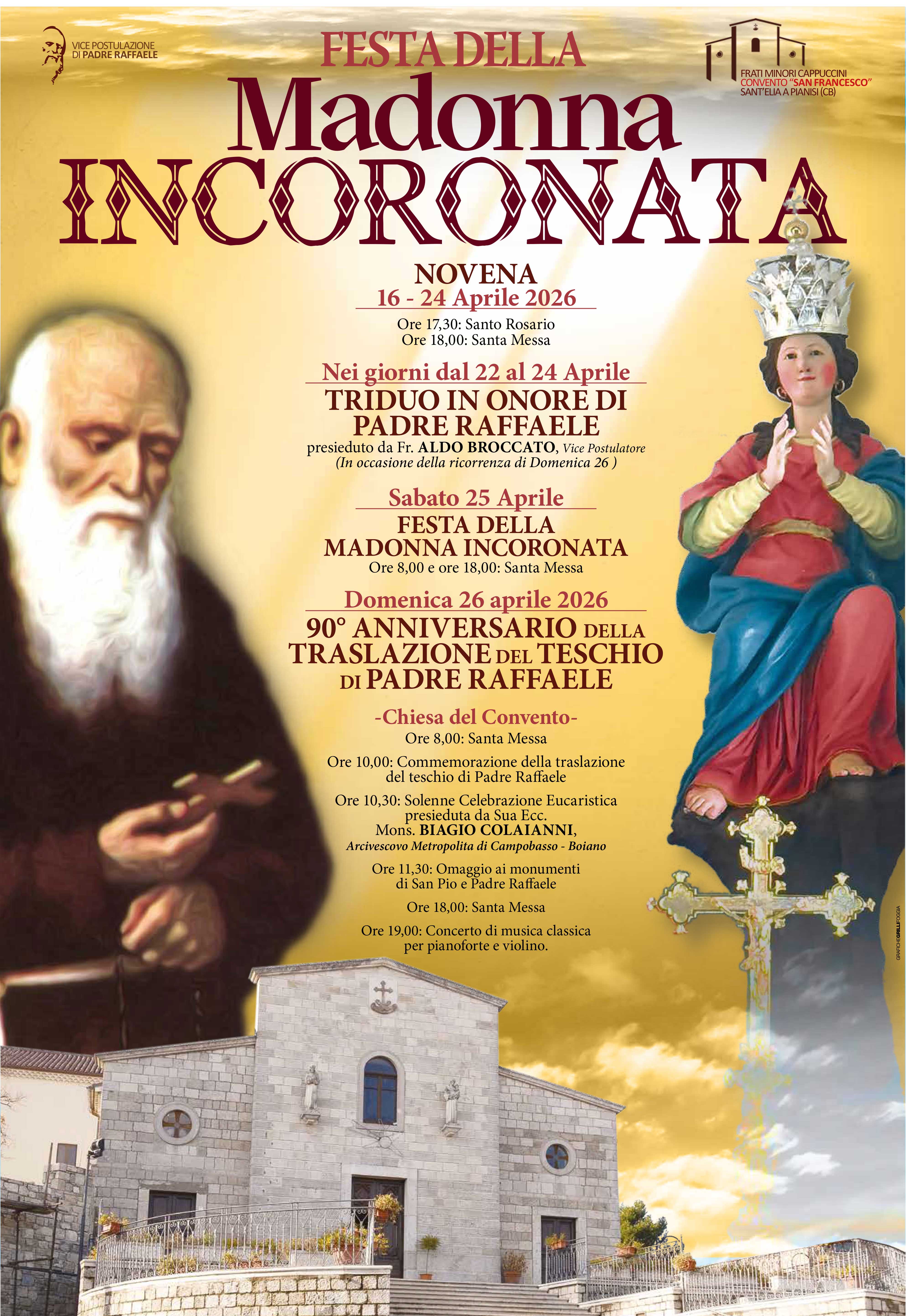 Come ogni anno, l’ultima domenica di aprile, la comunità di Sant’Elia a Pianisi ricorda la figura di padre Raffaele, in occasione dell’anniversario della traslazione del suo teschio dal cimitero d...